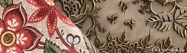 Ensemble d’échantillons de tissus inspirés des indiennes du XVIIIᵉ siècle.