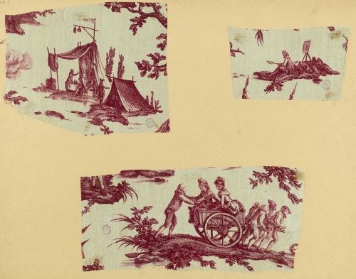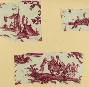 Ce décor historique, créé pour la Manufacture de Christophe-Philippe Oberkampf par Jean-Baptiste Huet, fut imprimé sur des toiles de coton à Jouy-en-Josas à la toute fin du XVIIIᵉ siècle, d’abord à la plaque puis au rouleau (à partir de 1797). Des fragments de ces étoffes révolutionnaires sont aujourd’hui conservés notamment au Victoria and Albert Museum et au Musée Carnavalet – Histoire de Paris.