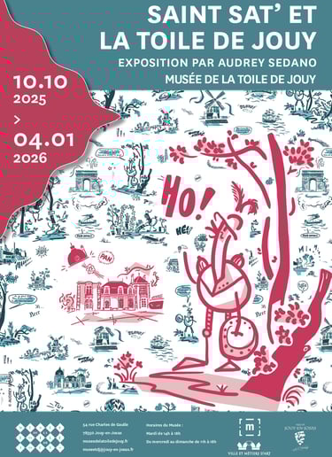 L'exposition "𝑺𝒂𝒊𝒏𝒕 𝑺𝒂𝒕' 𝒆𝒕 𝒍𝒂 𝑻𝒐𝒊𝒍𝒆 𝒅𝒆 𝑱𝒐𝒖𝒚" tisse avec brio les liens entre l'héritage de la Manufacture Oberkampf et l'art contemporain. À travers une vingtaine d'œuvres, dont plusieurs créations exclusives, cette artiste pluridisciplinaire nous offre un regard neuf et créatif sur notre patrimoine : bande dessinée, illustration et mode dialoguent avec la tradition textile dans une proposition artistique originale et captivante.